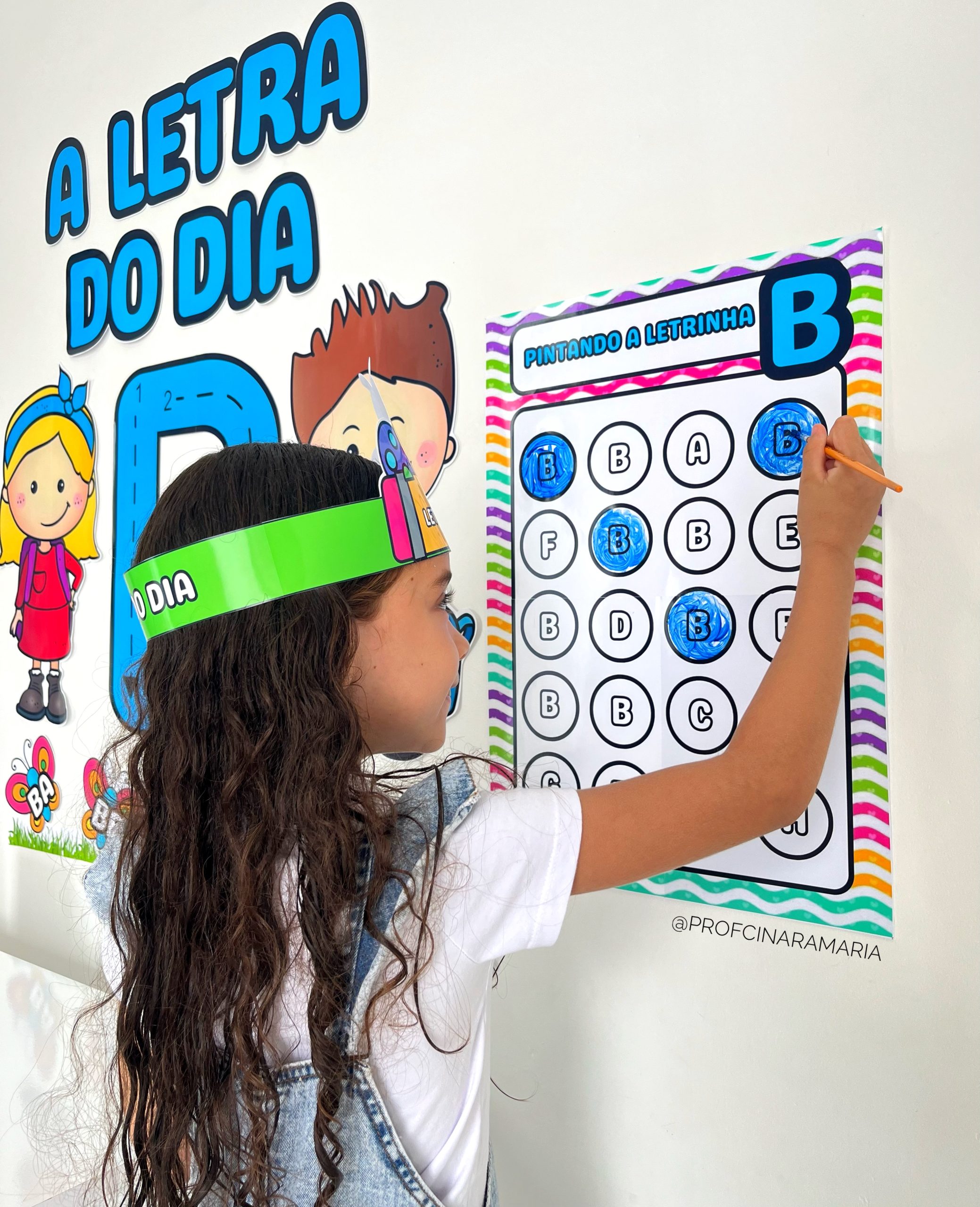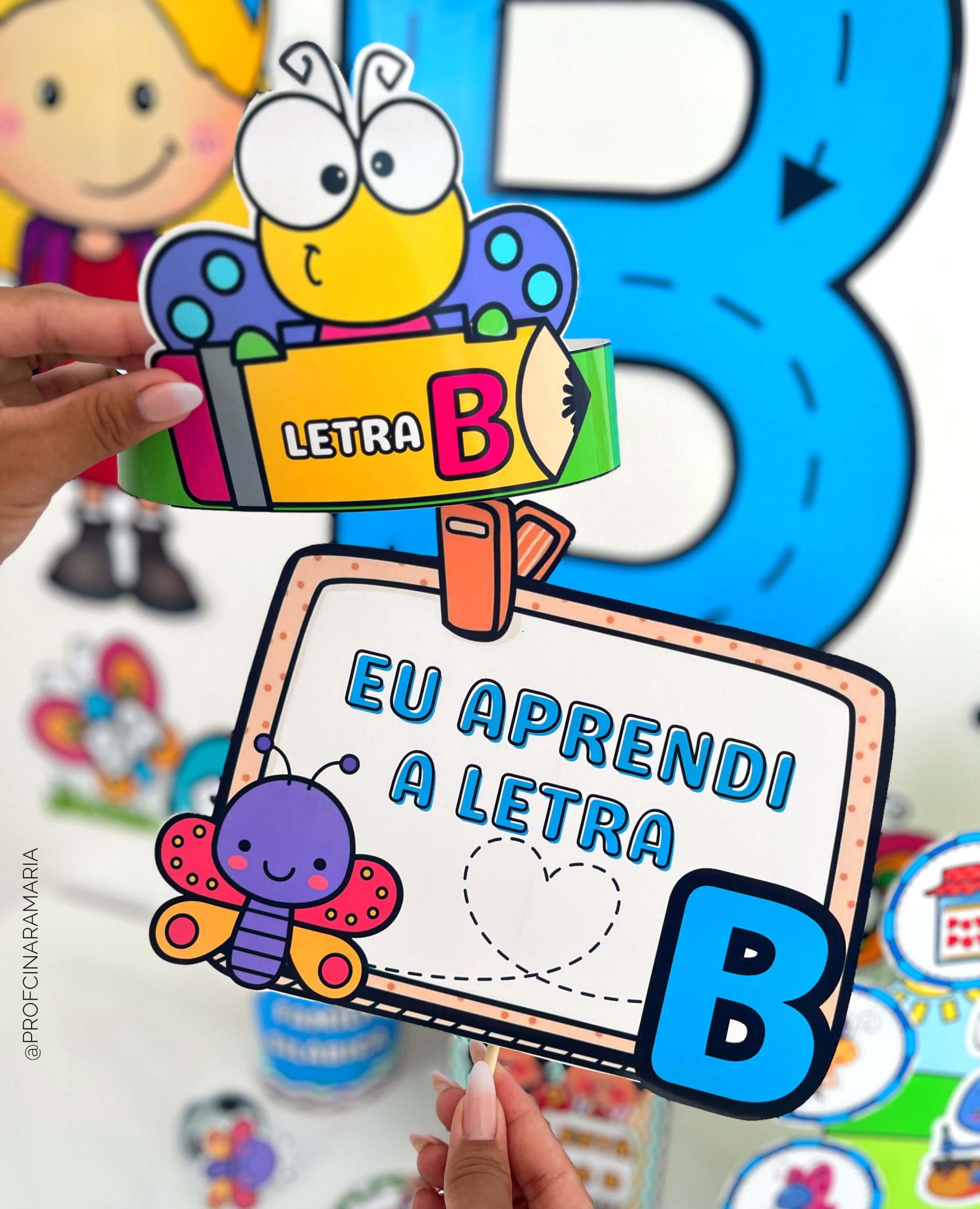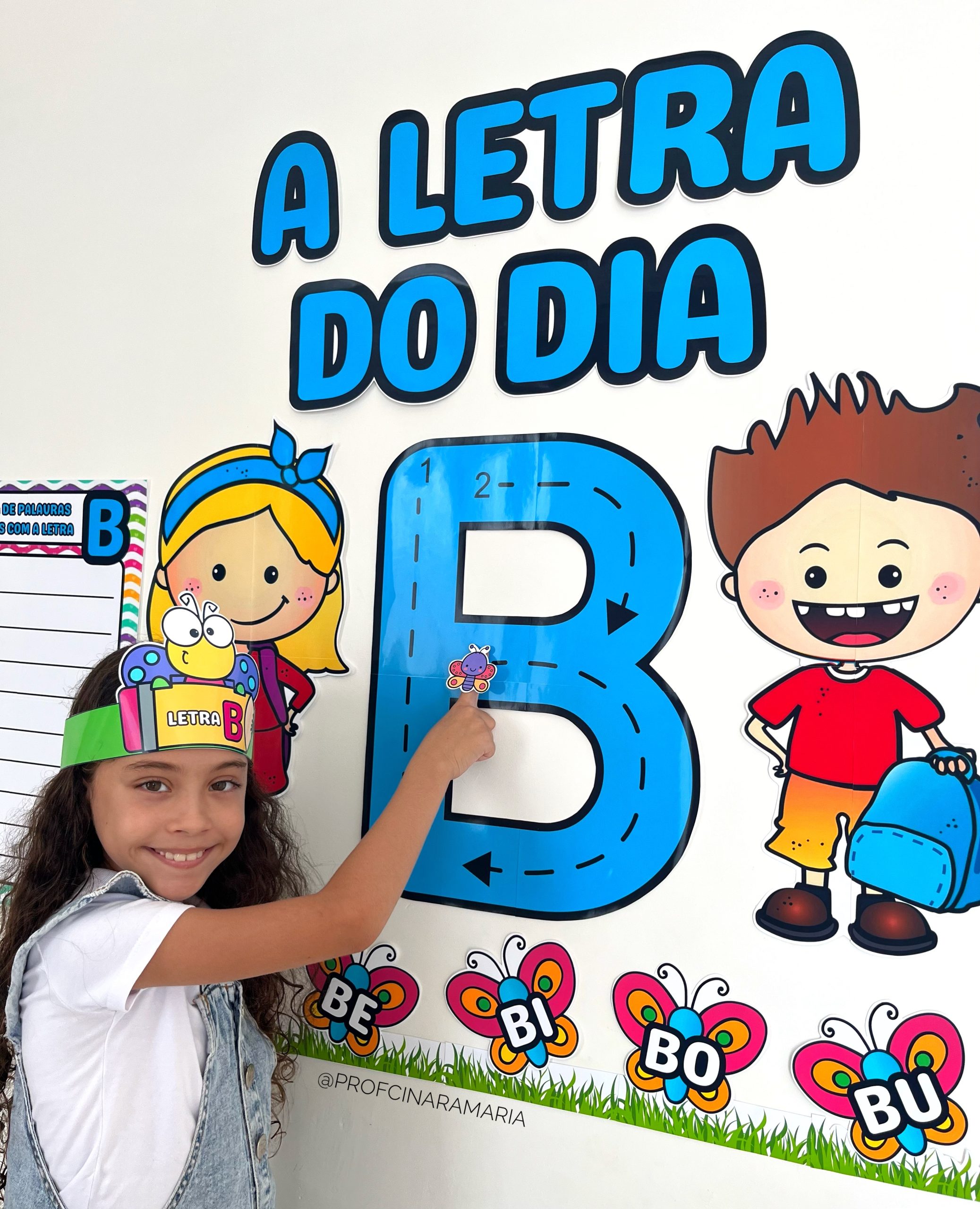 ✅Anel da borboleta e da bola para que a criança passe o dedo na letra B do painel e acompanhe a escrita correta.