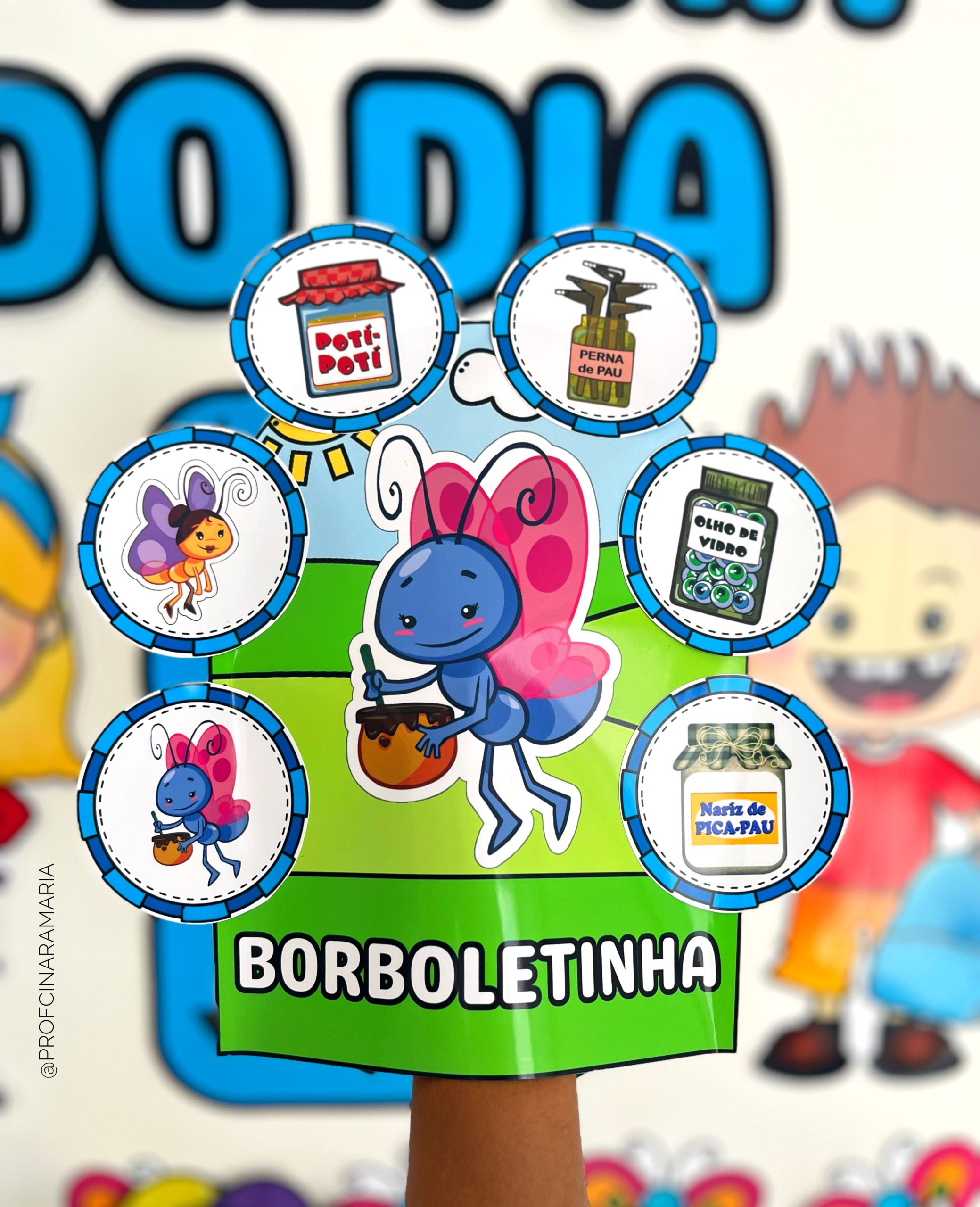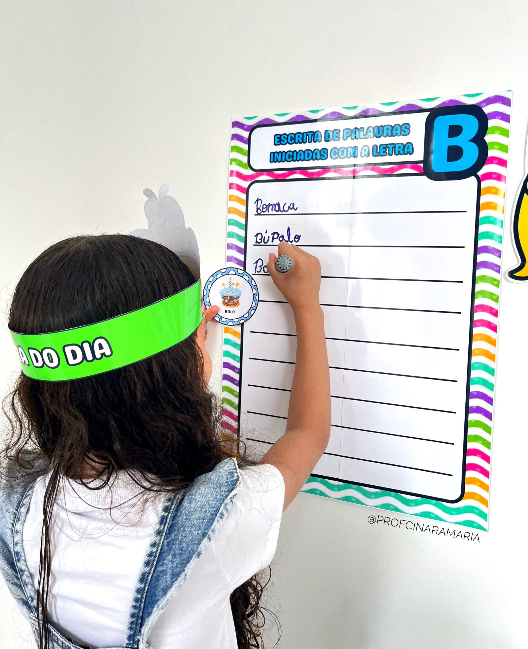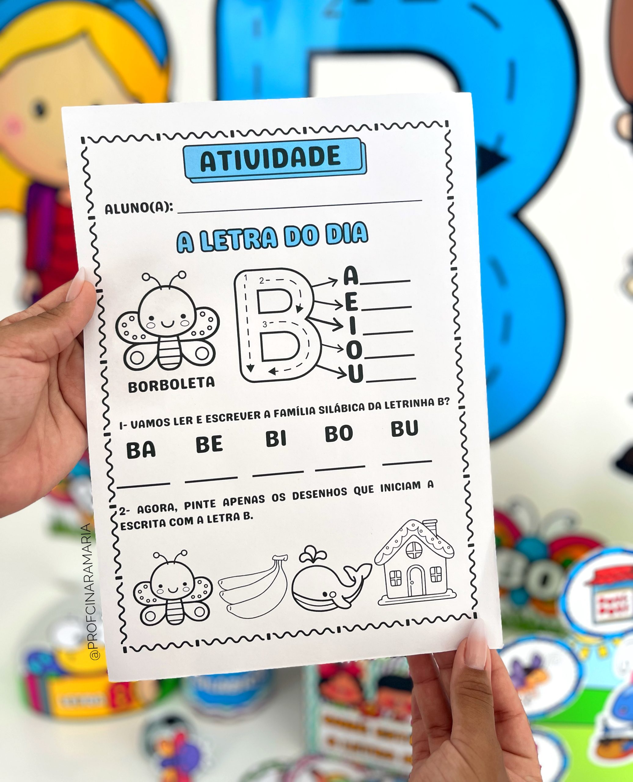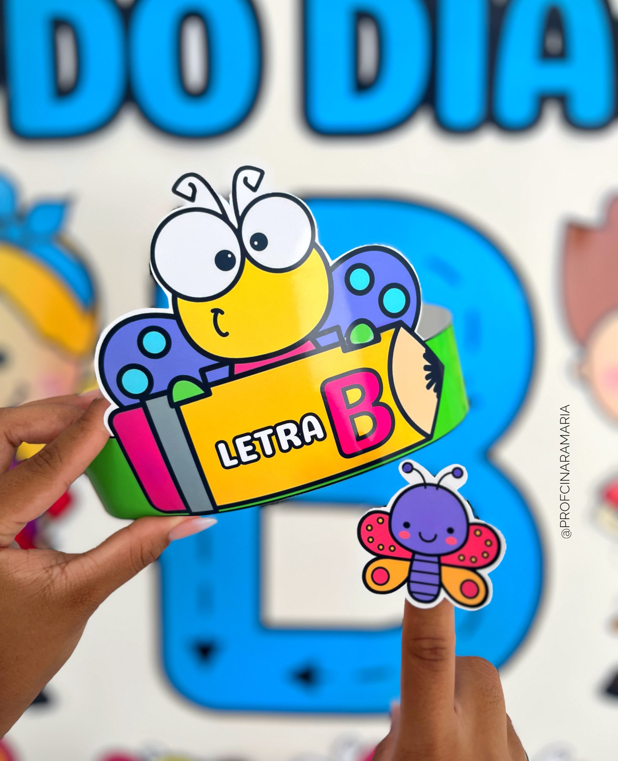 ✅Anel da borboleta e da bola para que a criança passe o dedo na letra B do painel e acompanhe a escrita correta.